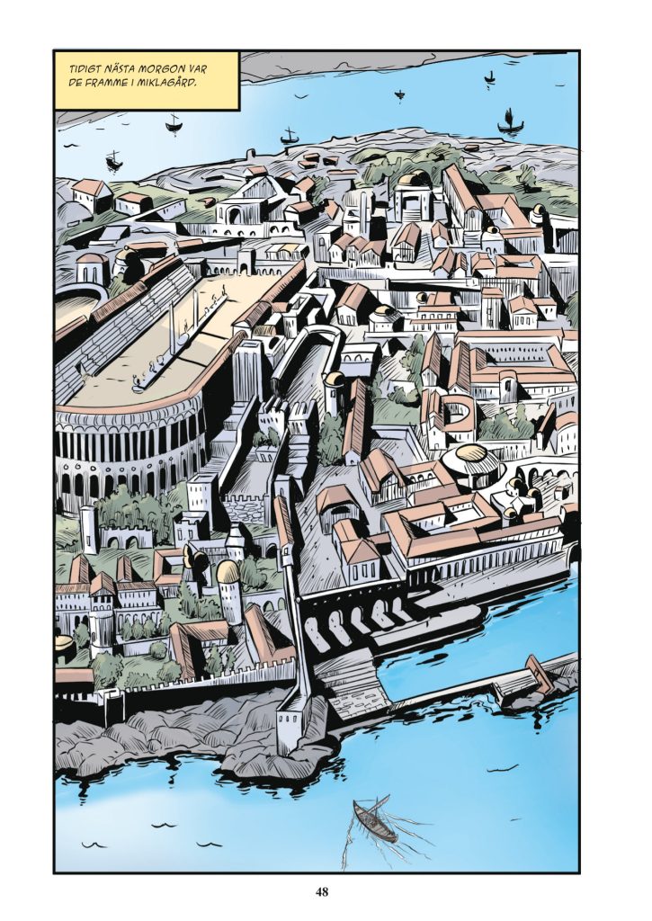 Men vad skulle Siri vara med på för äventyr? Patric ville visa att vikingarna inte bara var fruktade krigare, utan också handelsmän. Då föll valet på staden Konstantinopel och hela äventyret skulle handla om resan dit och vad som hände i staden. Så klart skulle det följa med något som var värdefullt och skurkar ville ha.